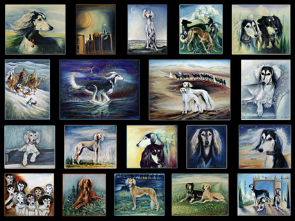 |  | Ausser den vielen Saluki-Öl-Gemälden (links eine kleine Auswahl)