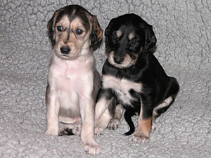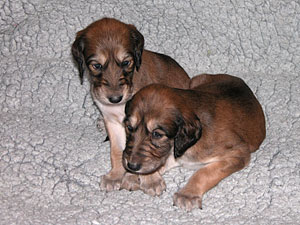 2 Hündinnen2 Rüden (hellrot mit schw.Befederung)