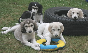 Welpen:2 Rüden (creme) + 3 Hündinnen (2 grizzle und 1 creme)