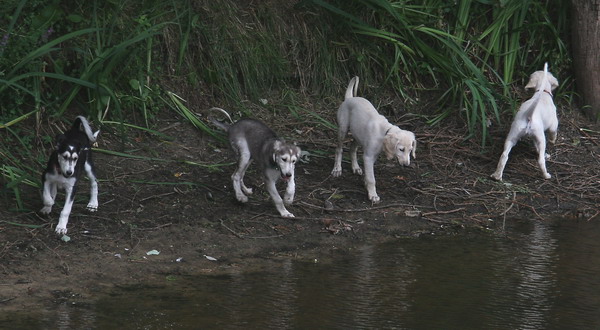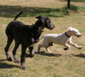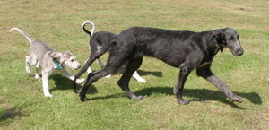 Letzten Sonntag hatten die Welpen Besuch einer jungen Deerhound-Hündin