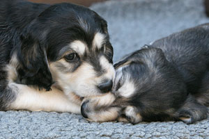 Auf diesen Fotos sind unsere Welpen 4 Wochen alt.