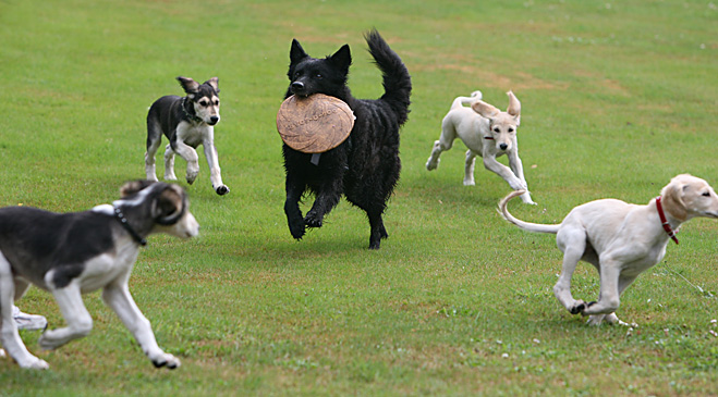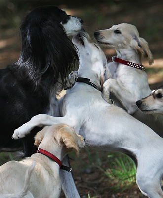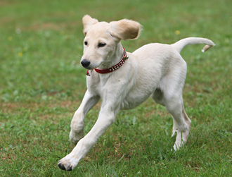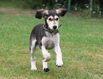 Der Saluki gehört zwar nicht zu den Apportierhundrassen, doch, wenn er erstmal erkannt hat, dass das Apportieren der Frisbyscheibe zu seinem Menschen weiteres Spielen bedeutet, dann lernt er dies schnell. Statt einer Frisbyscheibe kann es natürlich auch ein Tennisball sein. |