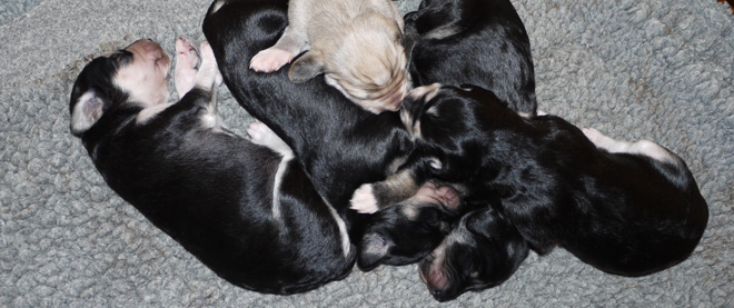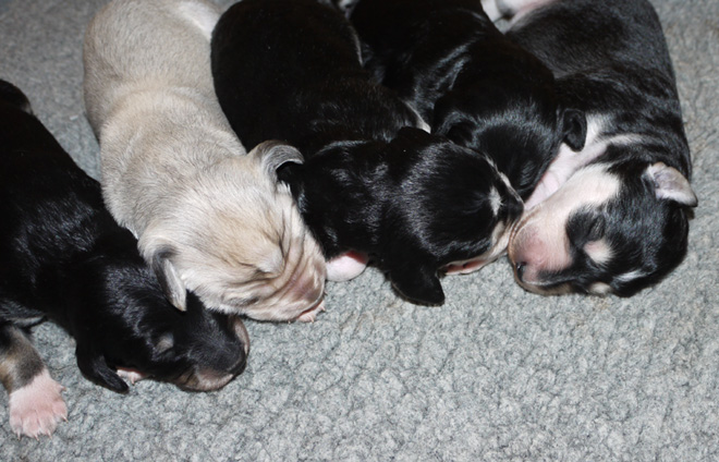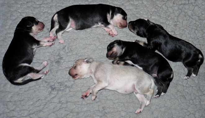Auf den Fotos sind die Welpen 1 Woche alt.