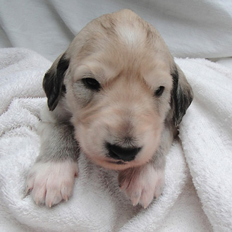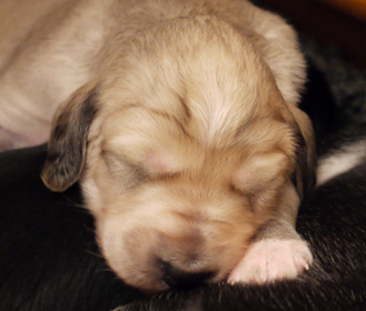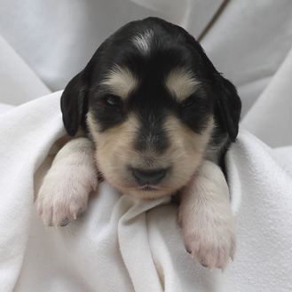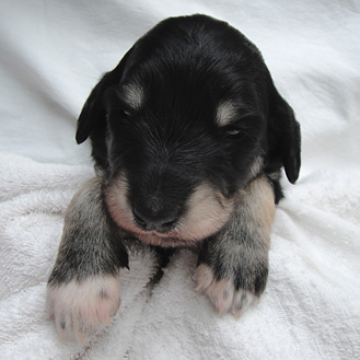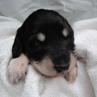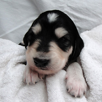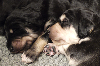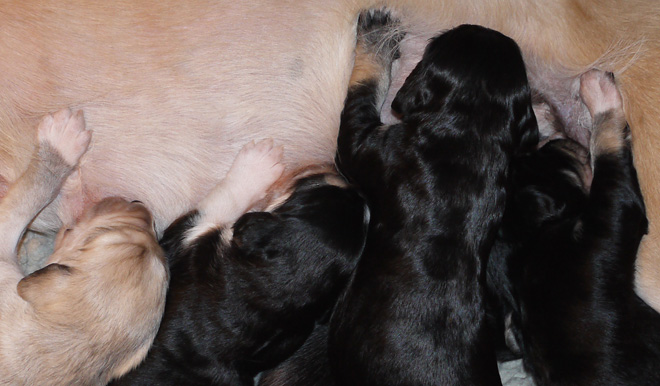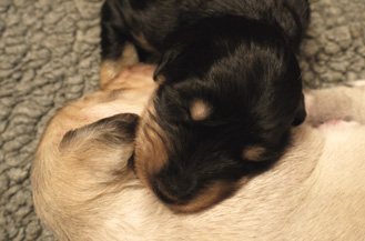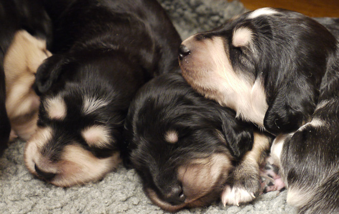 Alle Welpen haben nun ihre Augen geöffnet, doch klar sehen können sie noch nicht. Beim genauen Hinsehen erscheinen die Augen noch ein wenig bläulich und milchig und das wird auch noch solange dauern, bis sie ihre volle Sehkraft erlangt haben. Auch die Ohren sind jetzt auf, so dass die Welpen nun beginnen werden, die Welt zu erobern.